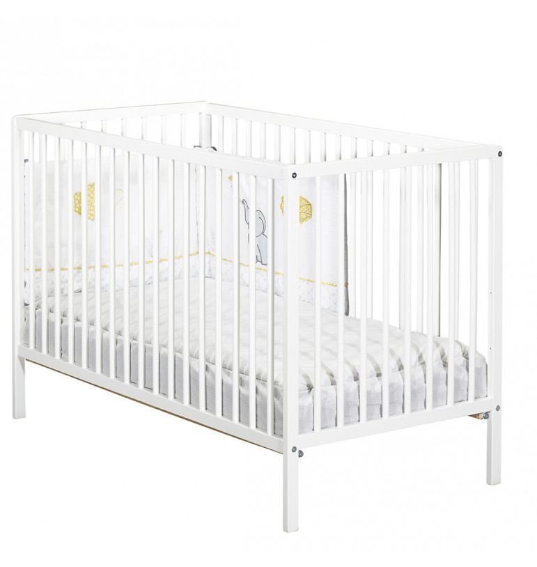 Lit bébé 120x60 à barreaux et sommier à lattes idéal pour la chambre de bébé.
