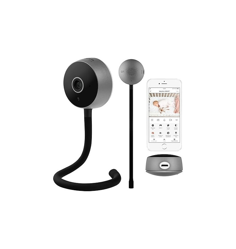 Le babyphone détecte les mouvements et les sons autour de l'enfant et en informe instantanément les parents , il est également équipé de capteurs d'humidité et de température. Il permet un contact vocal bidirectionnel et facilite l'endormissement grâce à des berceuses. Sa forme inhabituelle et sa flexibilité permettent de l'installer sur un meuble, par exemple, ce qui est encore facilité par trois poignées supplémentaires. Babyline Smart est un babyphone doté d'une application pour smartphone et de fonctions utiles pour les soins quotidiens, qui ne nécessite pas de récepteur supplémentaire.