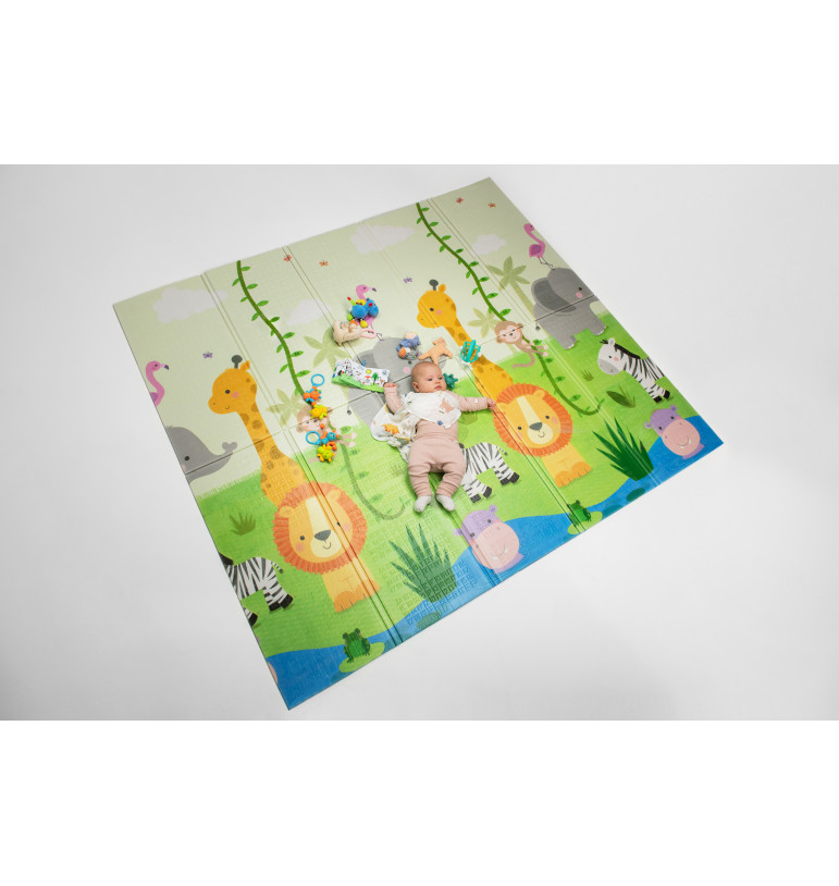 Le tapis multifonction est excellent pendant longtemps. Une impression colorée double face et une surface embossée inspirent aux jeux créatifs avec lenfant déjà à partir du premier jour de sa vie.