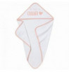 Cette cape de bain en éponge très douce enveloppera bébé de douceur et de chaleur à la sortie du bain. Très moelleuse et confortable, elle accompagnera Bébé pour sa toilette quotidienne. Message imprimé sur la capuche : Bébé à Croquer. Dimensions : 70x70 cm.